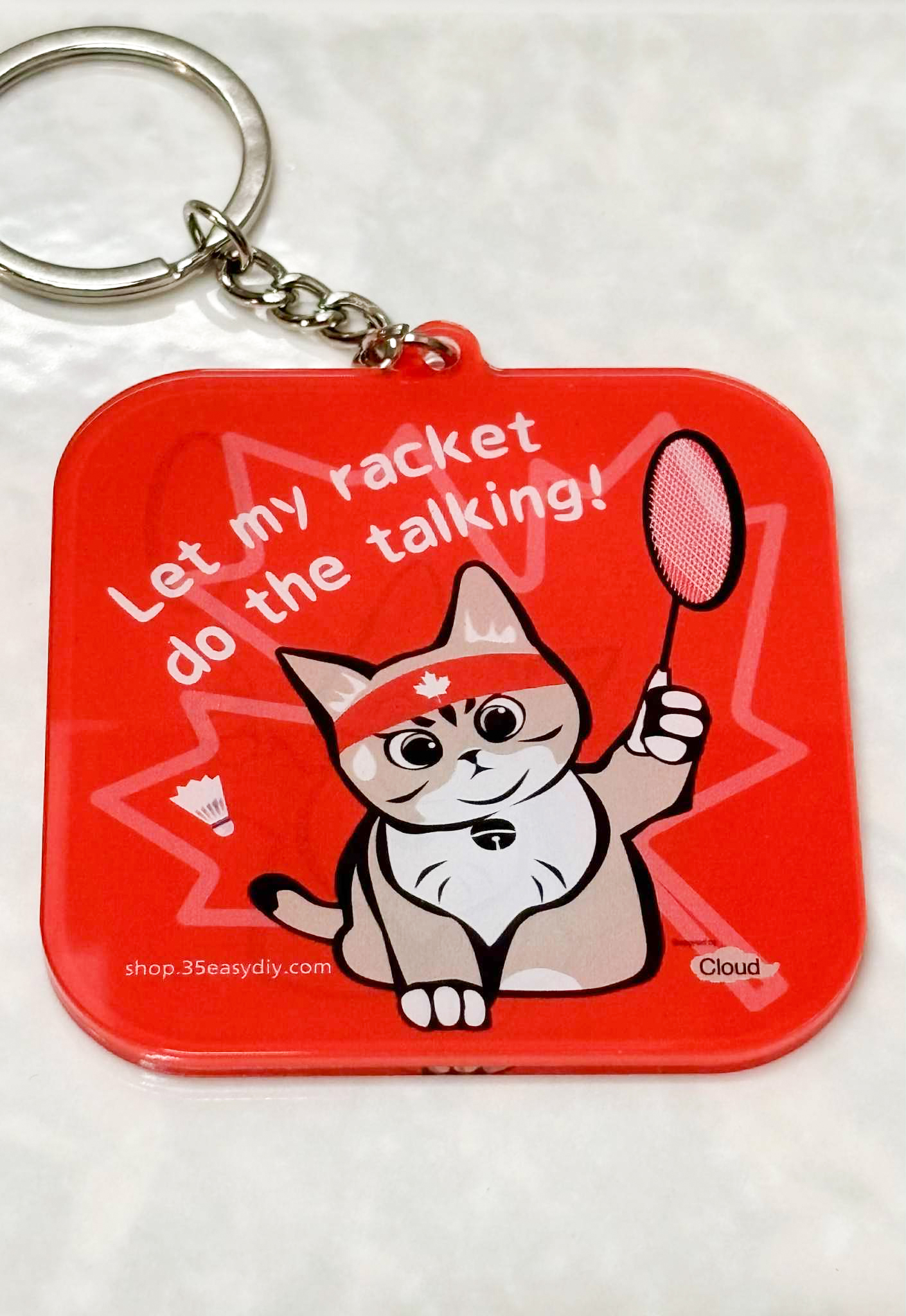 COFFEE THE CAT Series Large Badminton keychain “Let My Racket Do the Talking . Canadian headband”